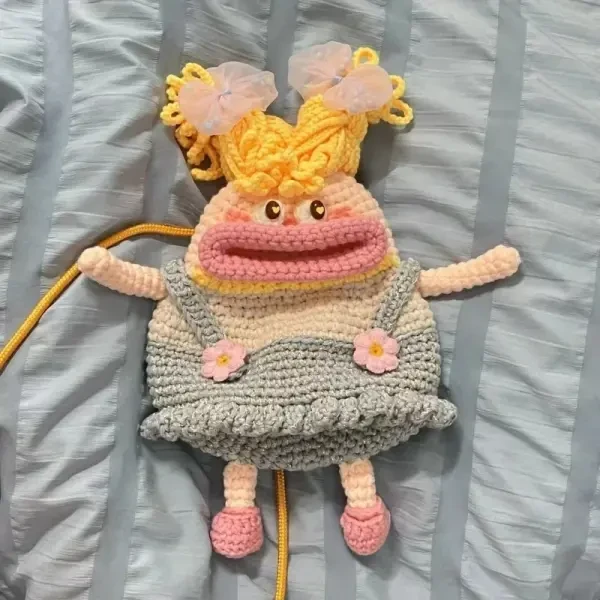 Discover the magic of handcraft with this cute handmade crochet doll bag! This small bag is not just an accessory, it is a piece of art that expresses elegance and uniqueness. With four charming designs, you will find the perfect bag to suit your taste and add a touch of joy to your look.